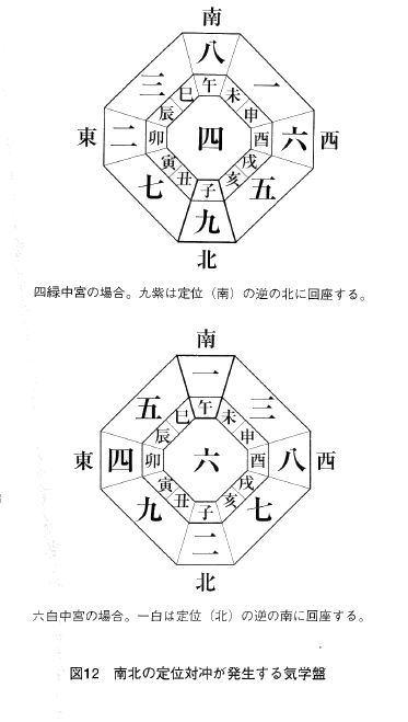 ⑦定位対冲=九星が後天定位盤の定位の反対側に回座している方位。