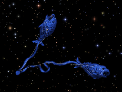ないというので、体を紐で結び付けたのが魚座の姿である。二人の姿がユニークで面白いというので、ゼウスが星座にしたのだ。